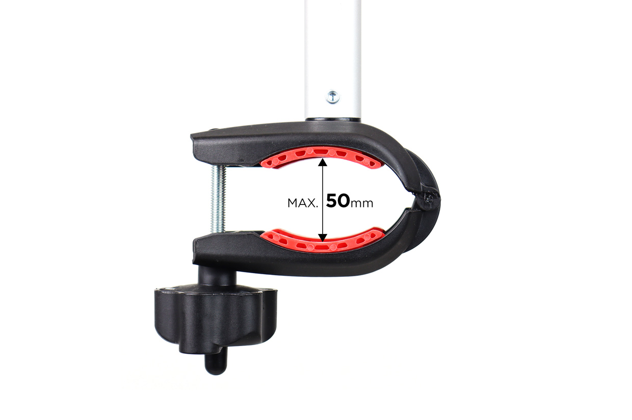 Helppo asentaa, käytännöllinen pyöräteline, jolla on suuri kantavuus. Kiinnitys mahdollistaa turvallisen ja nopean asennuksen eikä työkaluja tarvita.