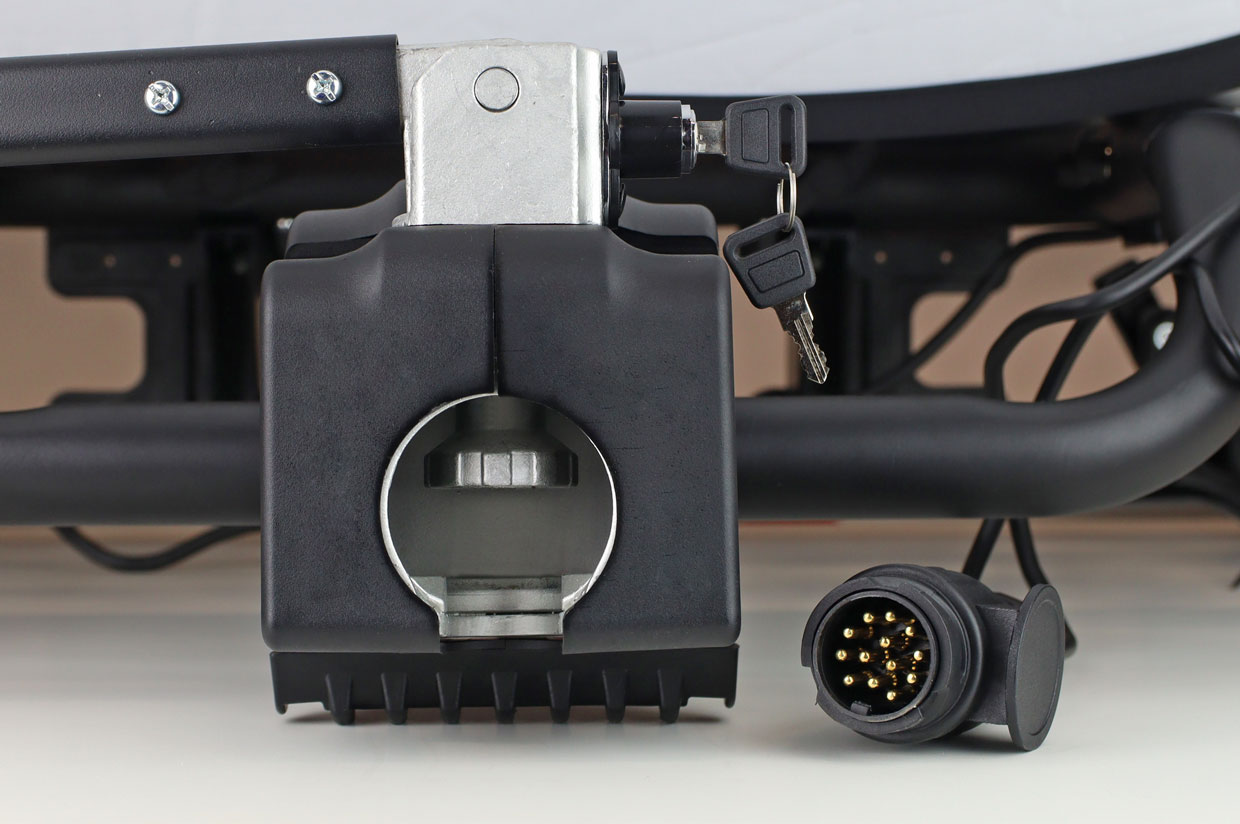 Erittäin kätevä järjestelmä polkupyörien kiinnittämiseen tavaratilaan – irrota vain kiinnikkeet, laita ne pyörien läpi, kiinnitä nupilla avaimella ja olet valmis