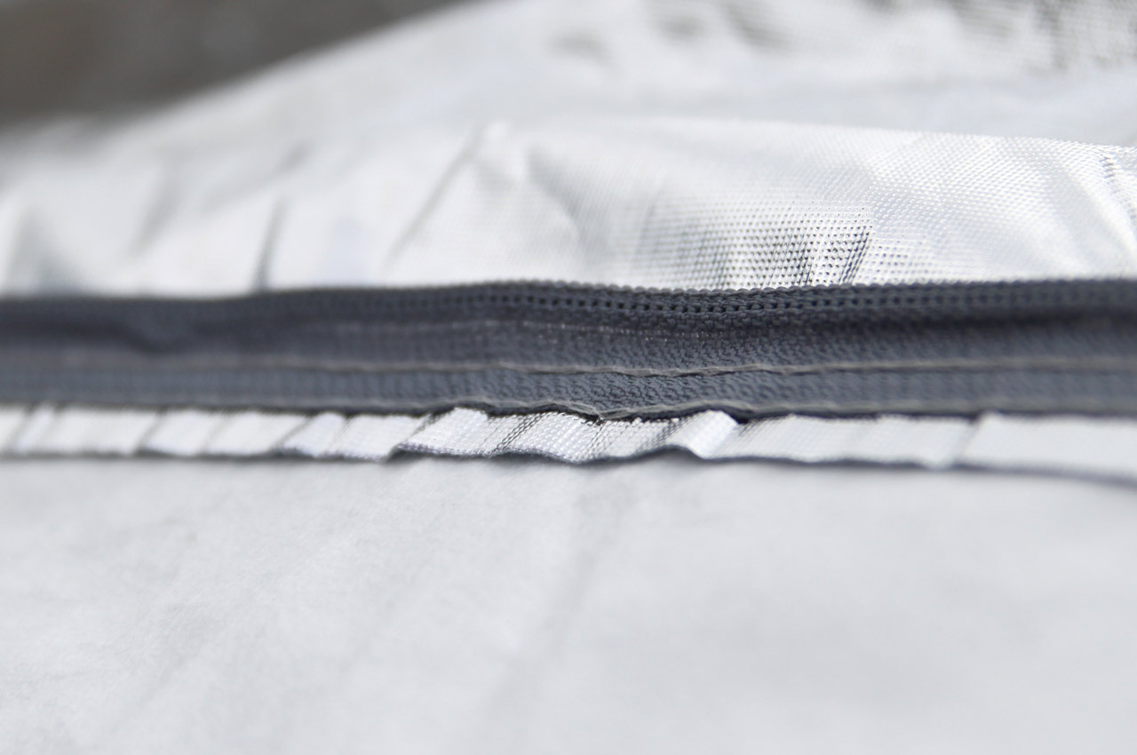 valmistettu säänkestävästä materiaalista, jonka paino on 120 g/m2 peitetty heijastavalla kalvolla, joka heijastaa täydellisesti auringon säteitä.