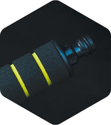 Kätevä, ergonominen pesuharja, johon voit liittää letkun suoraan veteen.