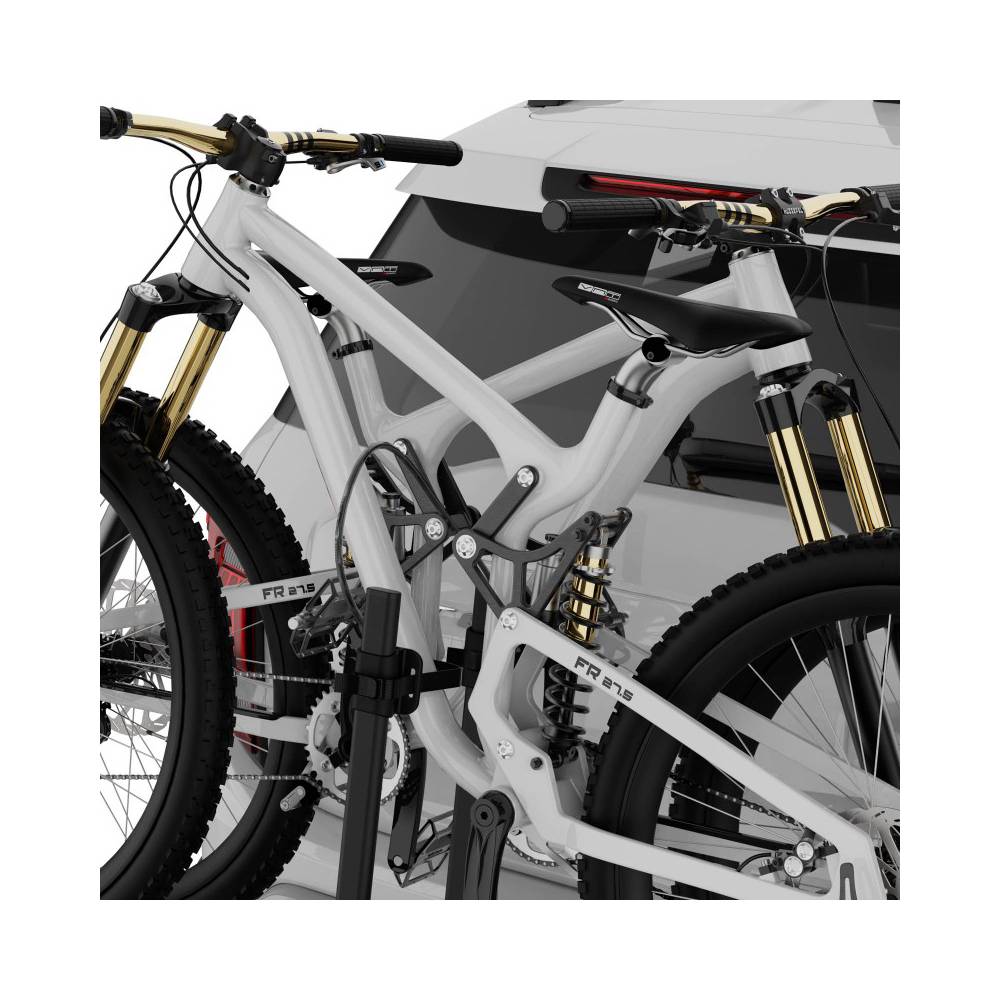 Pyörät kiinnitetään suojatuilla tekstiilihihnoilla, jotka estävät vaurioita rungossa ja vanteissa. Telineessä on modernisti muotoillut takavalot kaikilla tarvittavilla toiminnoilla. Lisäksi saatavilla on lisävarusteena varkaussuojat sekä pyörille että telineelle.