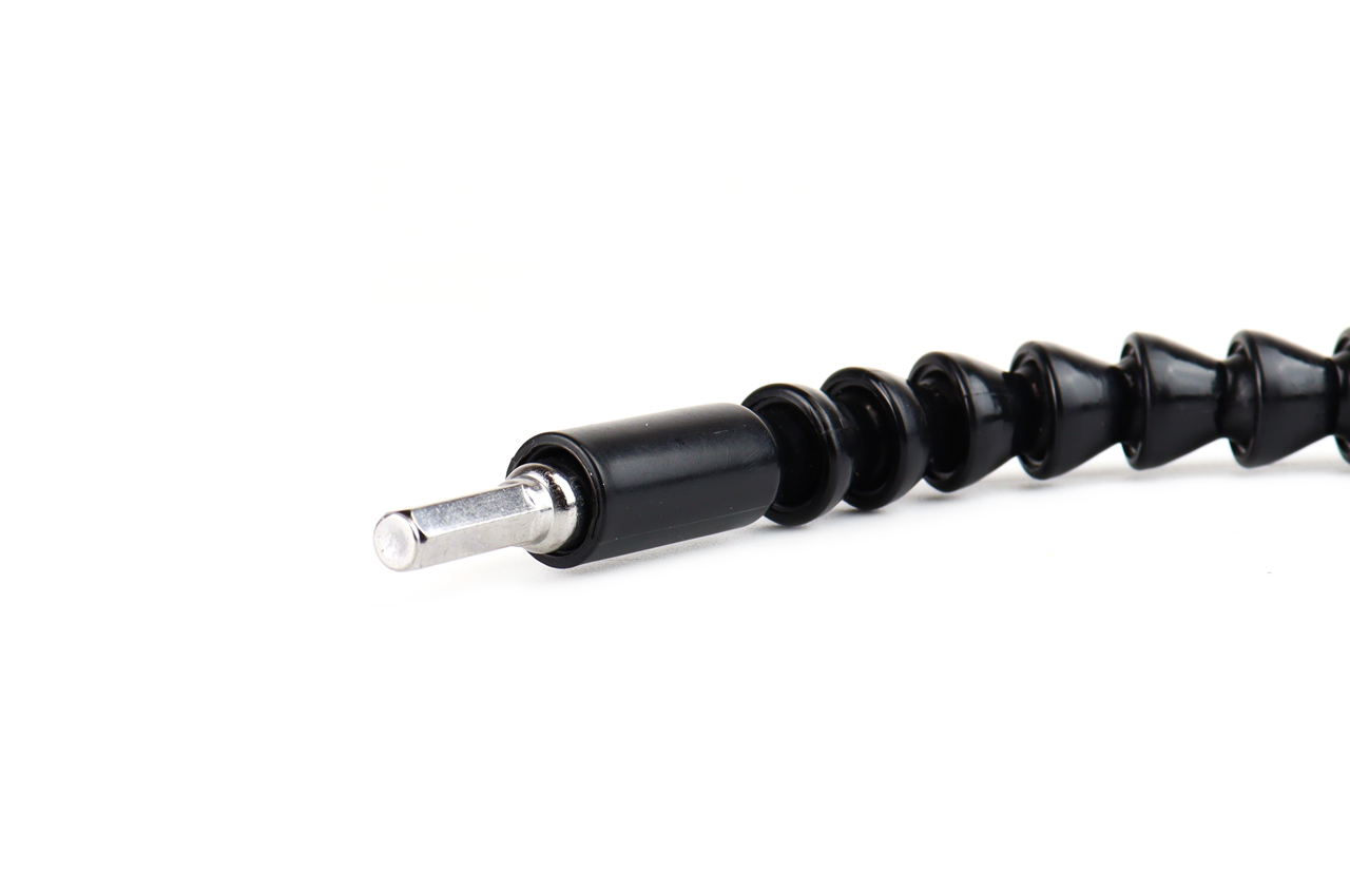 Erinomainen ja erittäin joustava bittijatke! Se on välttämätön laite porallesi tai ruuvimeisselillesi, varsinkin tilanteissa, joissa sinun on porattava reikä vaikeasti saavutettavaan paikkaan! Jousien ja laakeripallojen muotoilu tarkoittaa, että voit taivuttaa jatketta mihin tahansa suuntaan käytännöllisesti katsoen missä tahansa kulmassa ja saada iskun minne haluat!