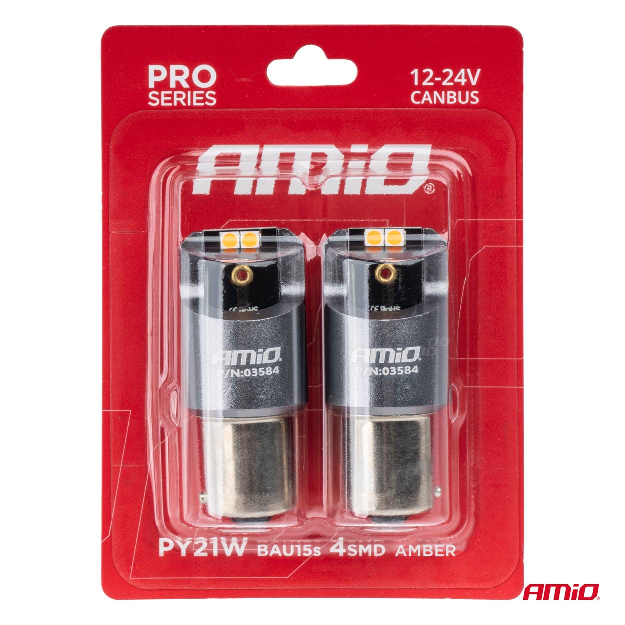 LED CANBUS PRO series PY21W 4×3030 SMD Amber 12V 24V AMIO-03584