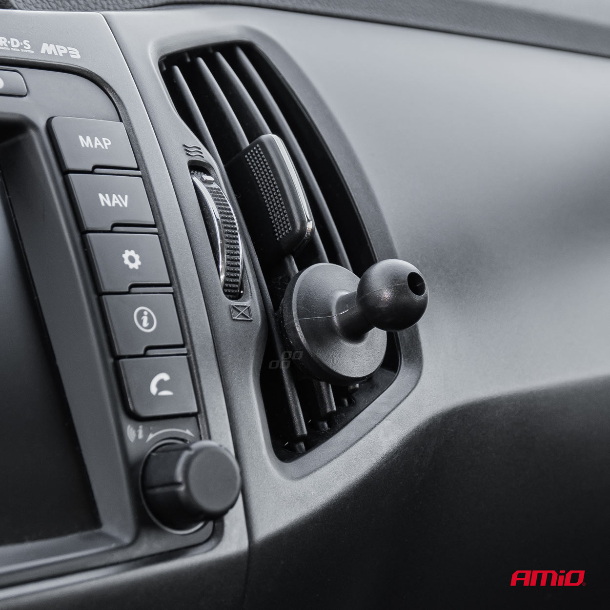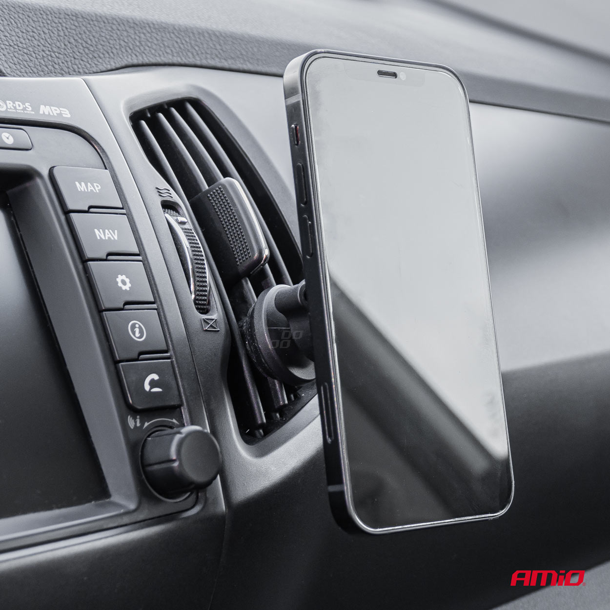 Innovatiivinen ja tyylikäs magneettinen pidike AMiO:lta. Tässä edistyneessä tuotteessa on vahva magneetti ja varsi asennettavaksi auton tuuletusritilään pyörimismahdollisuudella. Mukana on levy, jonka avulla voit käyttää pidikettä missä tahansa puhelimessa.