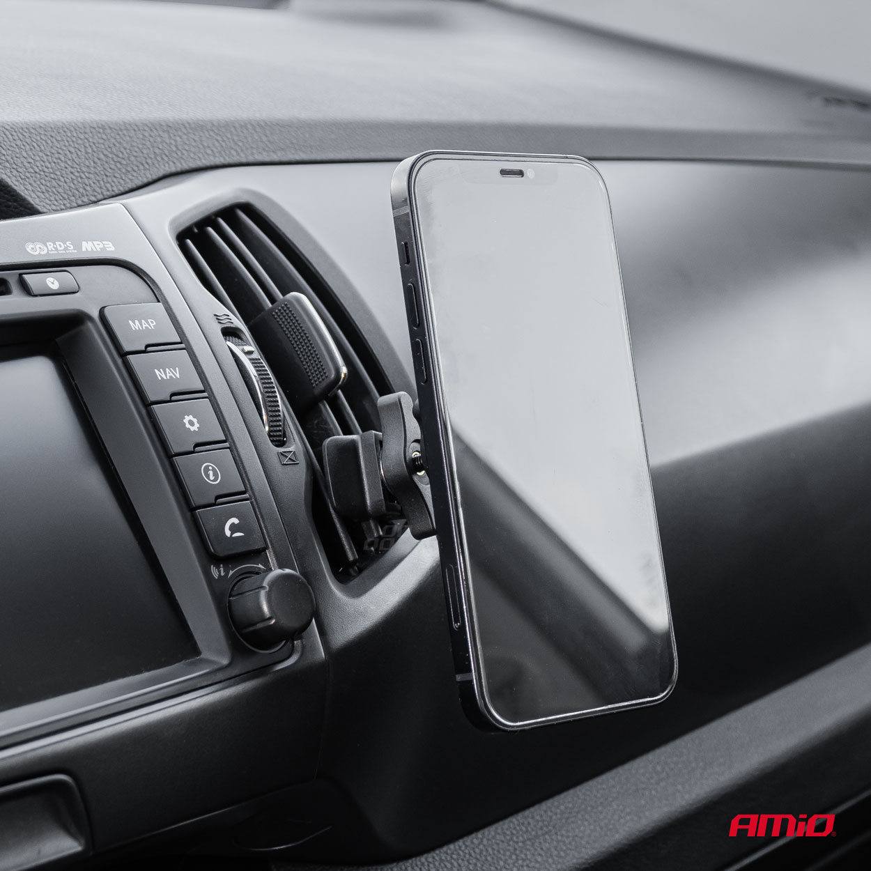 Innovatiivinen ja tyylikäs pidike AMiO My Mag -sarja, joka on yhteensopiva MagSafe-tekniikan kanssa. Tässä edistyneessä pidikkeessä on vahva magneetti ja kääntyvä varsi asennettavaksi auton tuuletusritilään. Mukana on pyöreä levy, jonka avulla voit käyttää pidikettä missä tahansa puhelimessa.