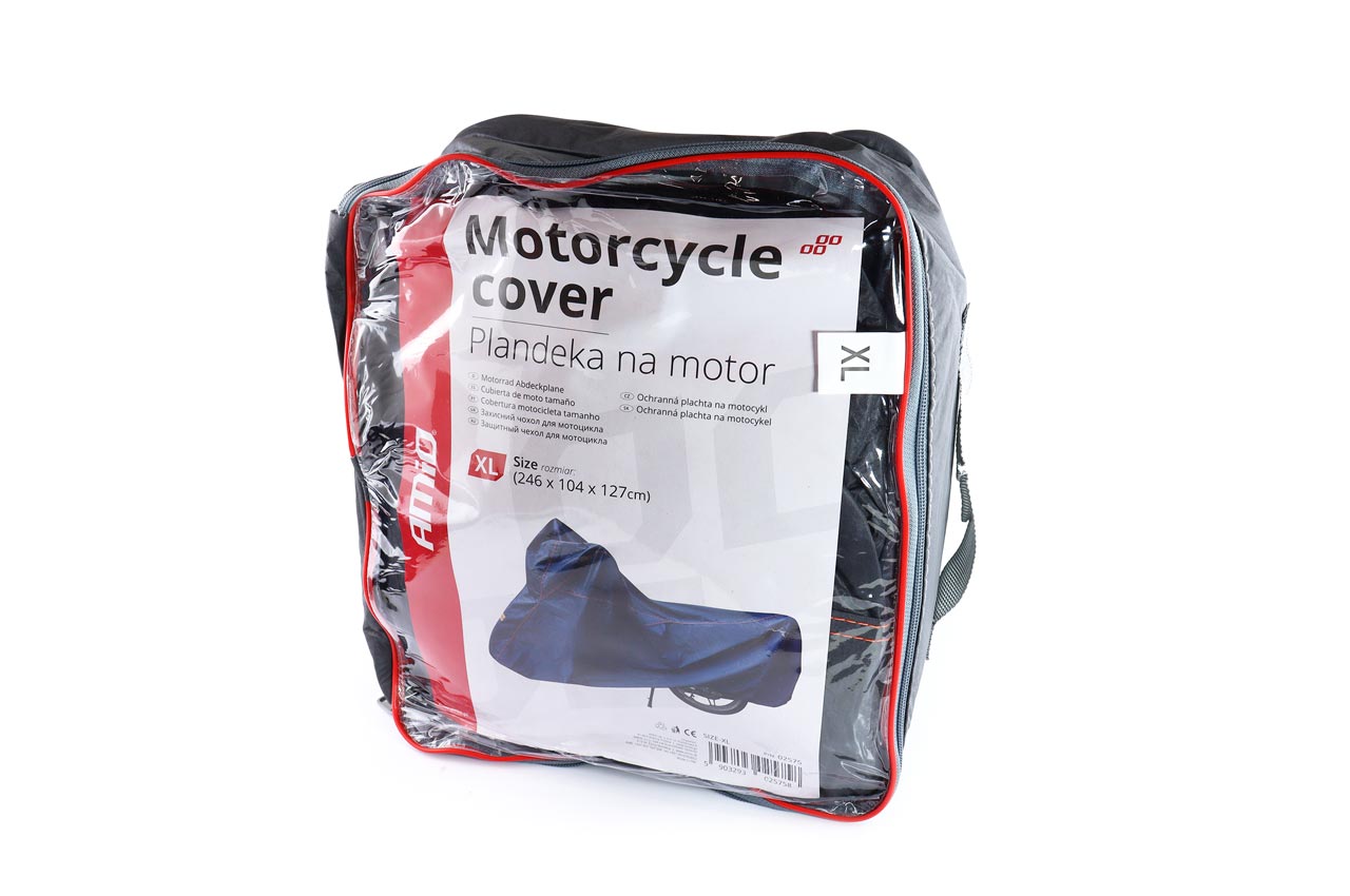 Kestävä ja käytännöllinen suojaava suojapeite tuotemerkiltä Amio on moottoripyörän luotettava suoja epäsuotuisilta sääolosuhteilta ja lialta. malli AMIO-02575 kokoinen XL (246 x 104 x 127 cm) sopii erinomaisesti useimpiin touring-moottoripyöriin, risteilijöihin ja kiinnitysmalleihin.
