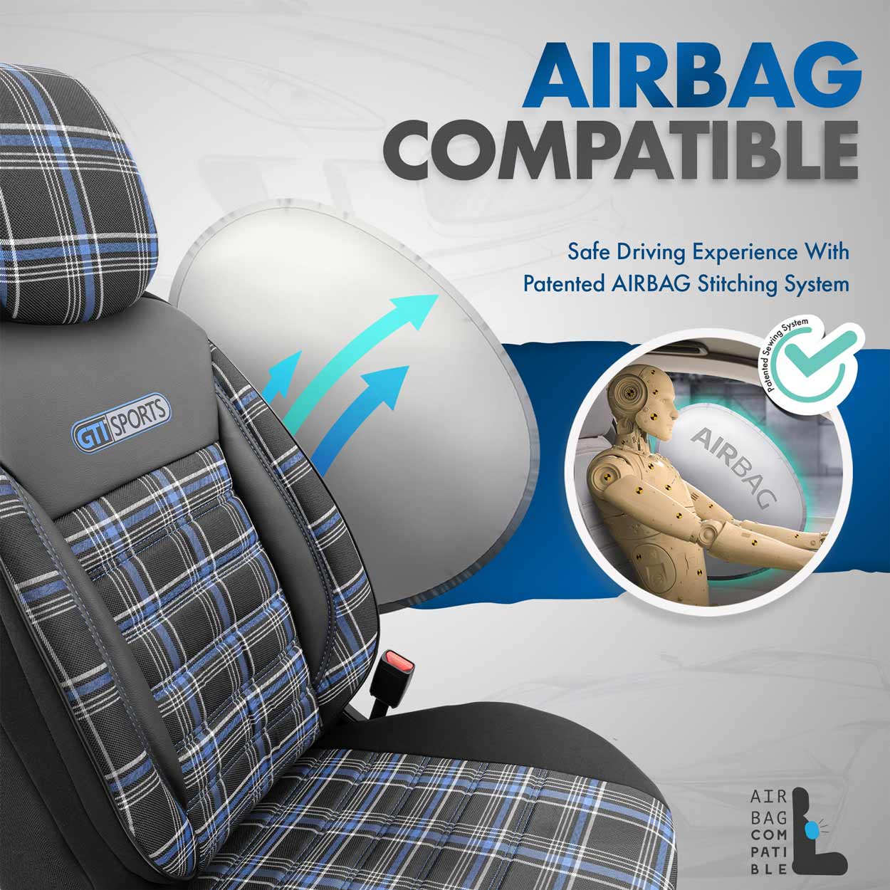 Päällysteissä on vakiovarusteena sertifioitu AIRBAG-sauma, joten ne sopivat molempiin autoihin sivuturvatyynyillä istuimissa sekä tavallisissa istuimissa. Erityisen sauman ansiosta ne peittävät istuimet kokonaan häiritsemättä turvatyynyjen toimintaa.