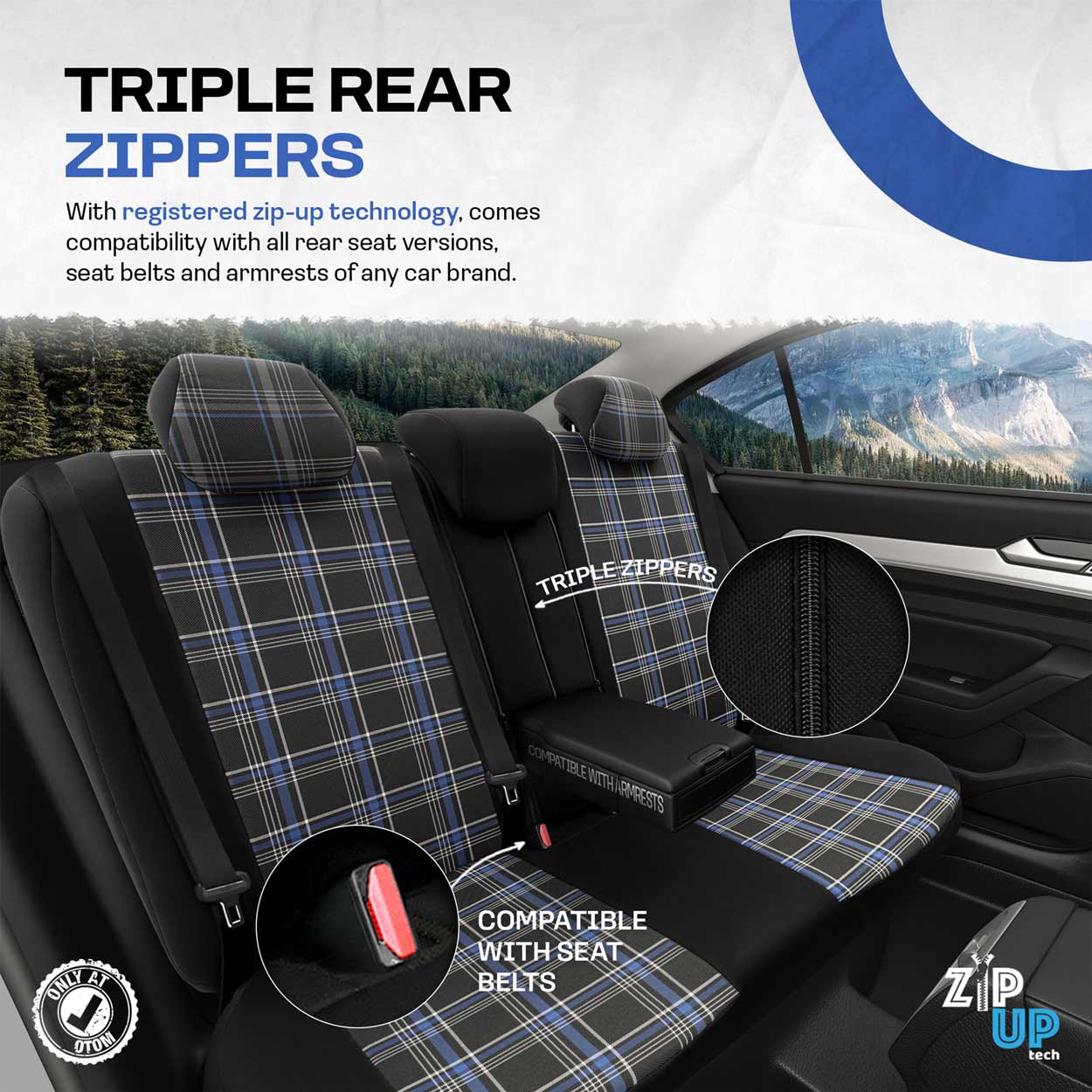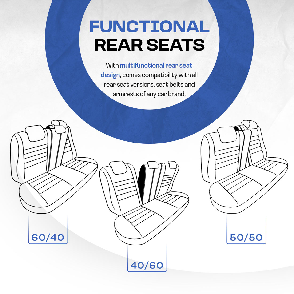 Päällysteissä on vetoketjut takasohvalla, joten sopii useimpiin markkinoiden istuimiin(Sunnuntain sohvat, jaettu oikealle ja vasemmalle). Voimme taittaa selkänojat ilman ongelmia matkatavaratilan lisäämiseksi.