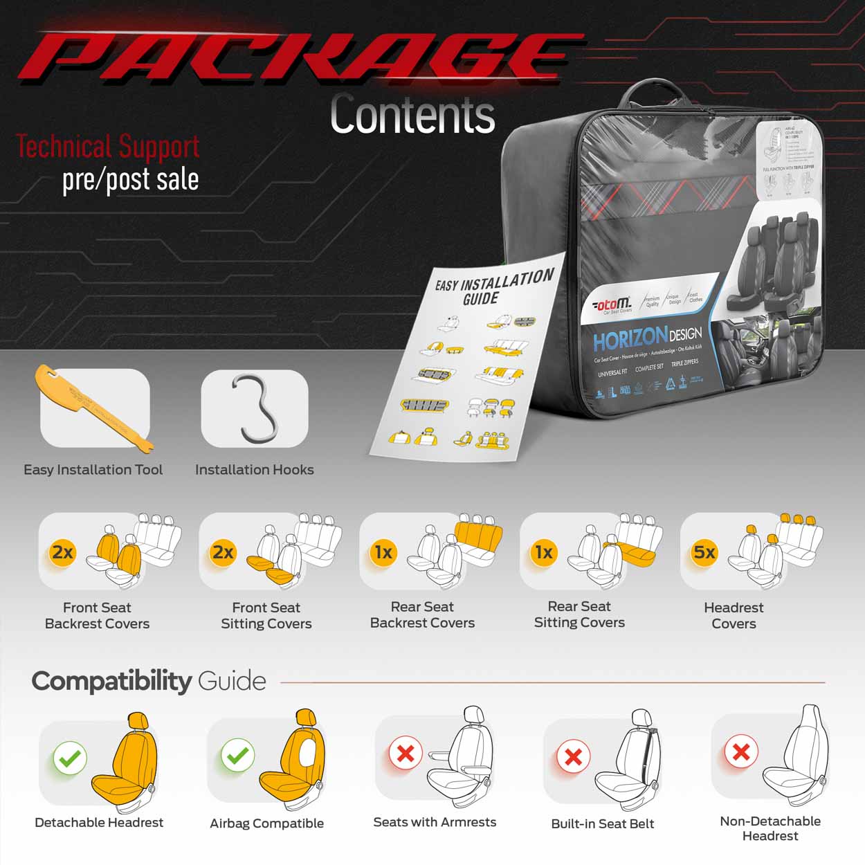 Päällysteissä on vetoketjut takasohvalla, joten sopii useimpiin markkinoiden istuimiin(Sunnuntain sohvat, jaettu oikealle ja vasemmalle). Voimme taittaa selkänojat ilman ongelmia matkatavaratilan lisäämiseksi.