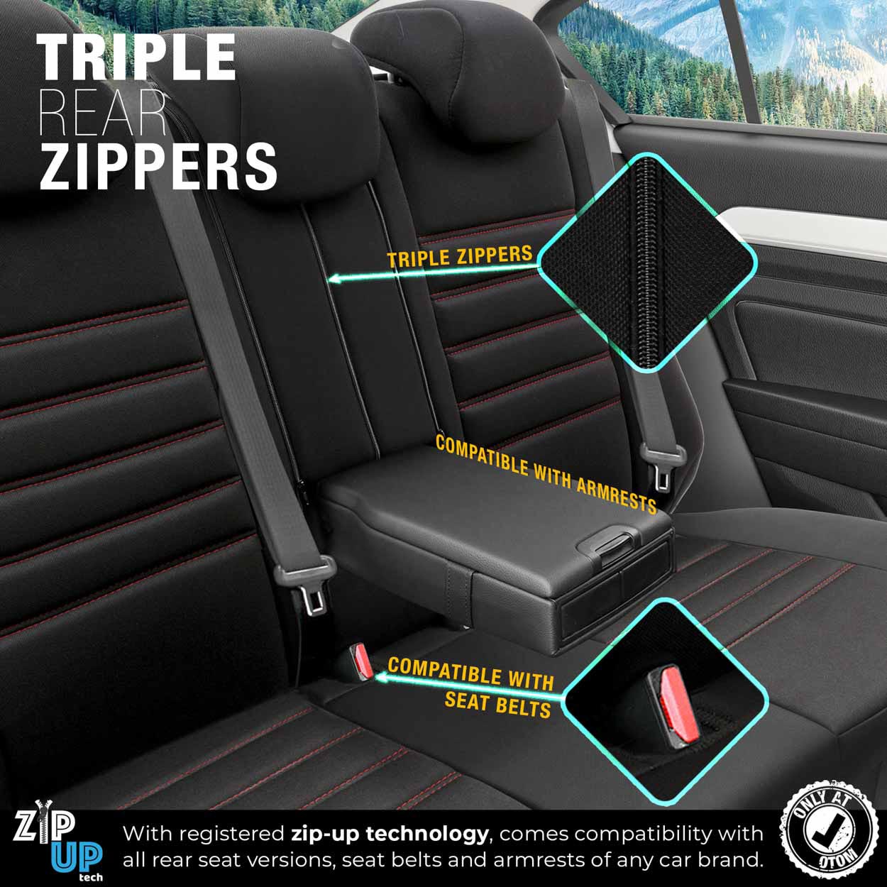Päällysteissä on vetoketjut takasohvalla, joten sopii useimpiin markkinoiden istuimiin(Sunnuntain sohvat, jaettu oikealle ja vasemmalle). Voimme taittaa selkänojat ilman ongelmia matkatavaratilan lisäämiseksi.