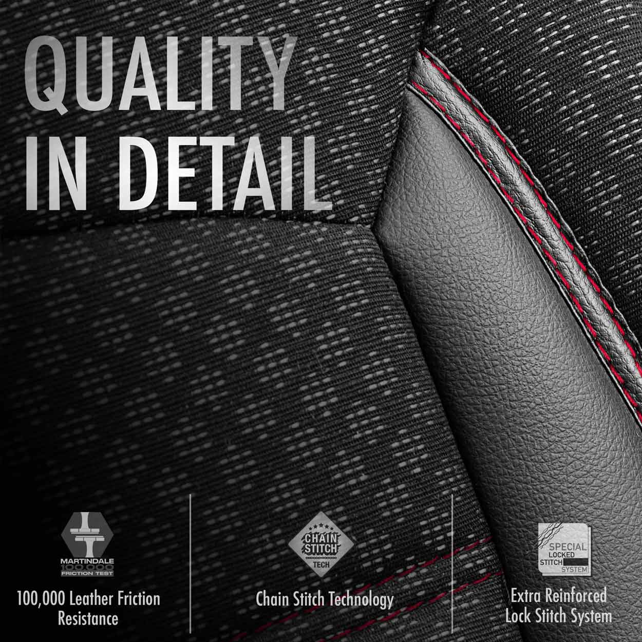 Kaikki materiaalit on täysin laminoitu polyuretaanivaahdolla, mikä estää kansien liukumisen istuimiin nähden.