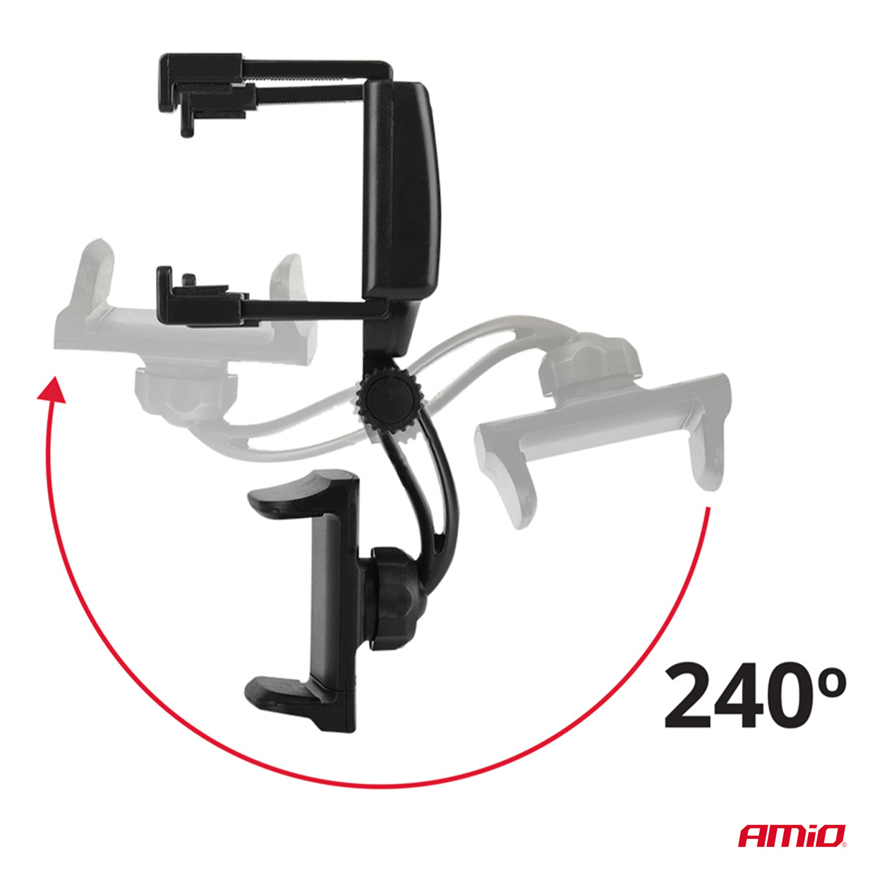 Sekä puhelimen kiinnityselementti että peili ovat tasaisesti säädettävissä, mikä antaa pidikkeelle suuren monipuolisuuden. Tämän ansiosta kiinnitämme helposti melkein minkä tahansa puhelimen pidikkeeseen ja painamme pidikkeen jokaiseen peiliin.
