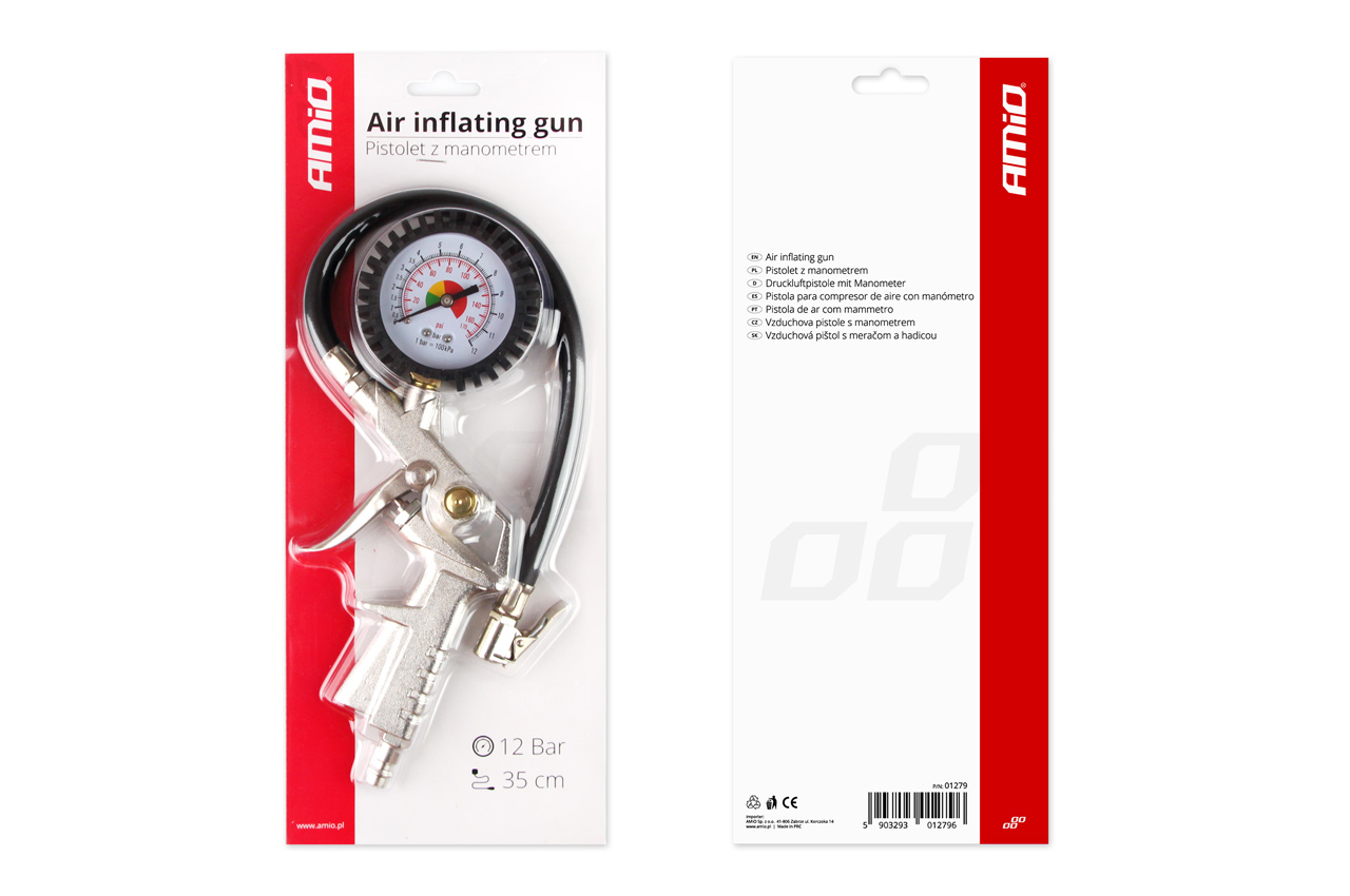 Pistoolia käytetään pyörien pumppaamiseen tavallisilla autoventtiileillä. Barometri on päällystetty aaltokumilla, joka suojaa sitä vaurioilta huolimattoman asennuksen aikana.