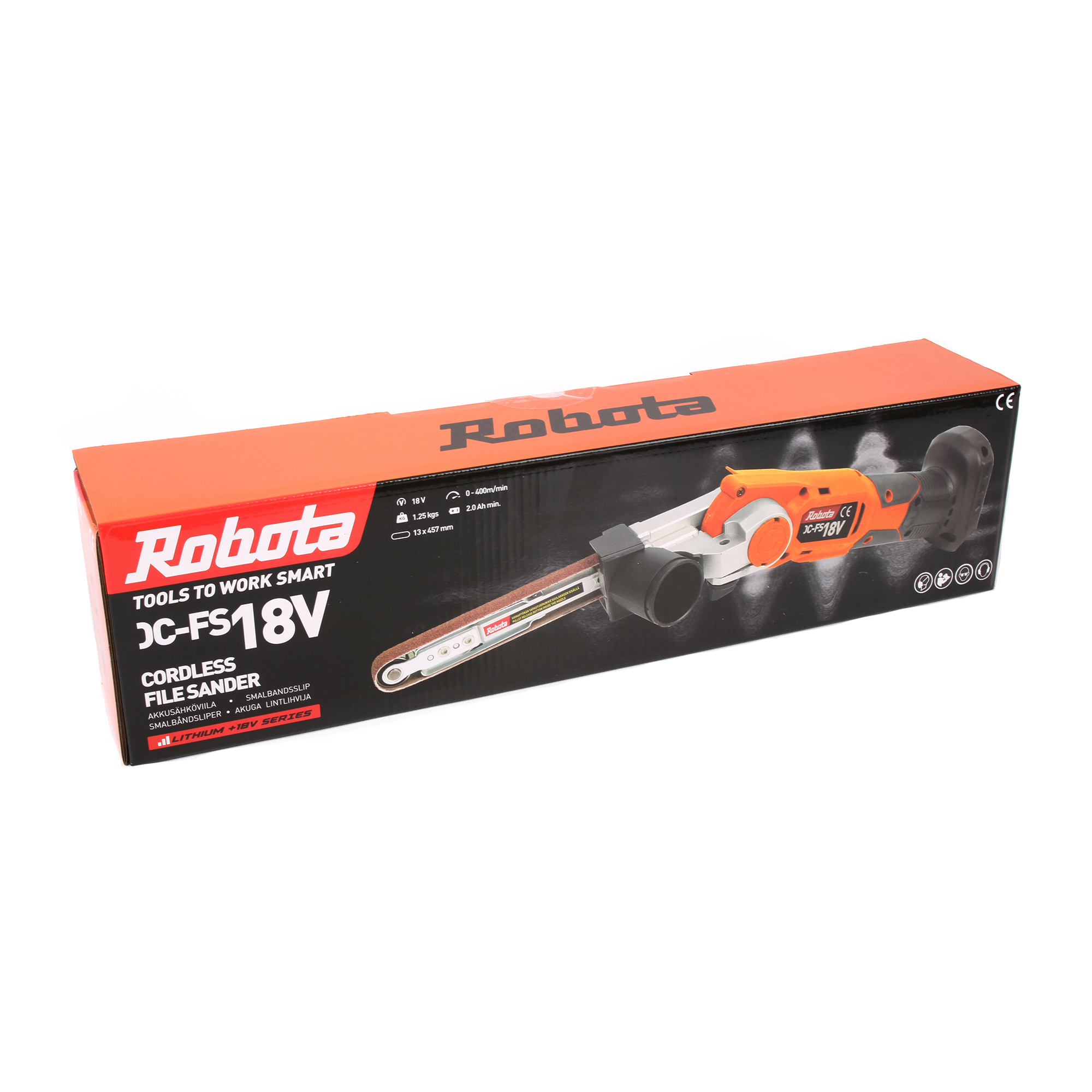 Robotan akkusähköviila säädettävällä kulmalla on kätevä apuväline siistiin jälkeen olipa kyseessä hionta, muotoilu tai viimeistely. Sähköviilalla voit työstää puuta, metallia tai muita materiaaleja.Tekniset tiedot:Jännite: 18 VMinimi akun koko: 2.0 AhNauhan nopeus: 0-400 m/ minPaino: 1.25kgHiomanauha: 13 x 457mm Ei sisällä akkua ja laturia.