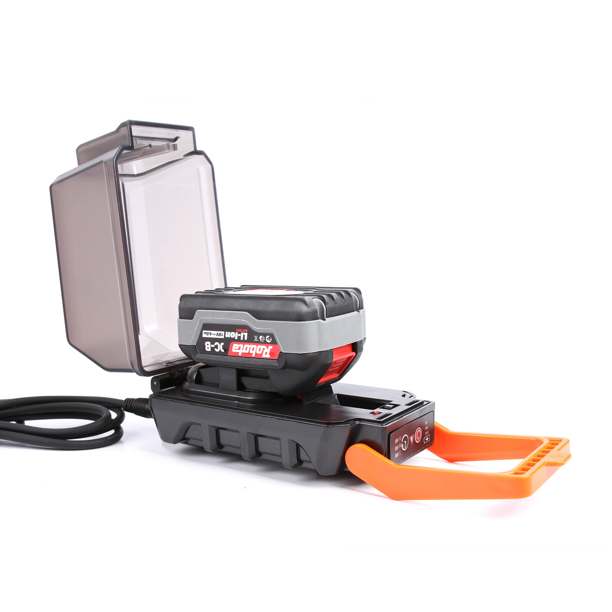 Yhden akun uppovesipumppu kaivoon tai sadevesitynnyriinRobota Akku-uppovesipumppu on kätevä johdoton valinta veden nostamiseen esimerkiksi kaivosta tai sadevesitynnyristä.Pumpussa on standardikokoinen hanaliitin, johon saa liitettyä perinteisen kasteluletkun pikaliittimellä kiinni.Pumppu toimii Robotan 18V akuilla tai Makitan LXT 18V akuilla. Pumpun erillisessä akkuyksikössä akku on suojattuna kannen alla. Pumppu liitetään virtajohdolla yksikköön kiinni.Akkuyksikön kiinnittämiseen mukana tulevat:Kätevä seinäteline, joka ruuvataan kiinni seinään / tasaiseen pintaan. Yksikkö irtoaa kiinnikkeestä ilman työkaluja! Klipsiteline, jolla yksikkö saadaan esimerkiksi vyölle, saavin laitaan tai vaikka levyn reunaan roikkumaan.Pumpussa on ajastin, jonka avulla voidaan ajastaa pumpun sammuttaminen. Kun pumppu käy, paina ajastusnappia, jolloin ajastimen LED valo syttyy.- Paina 1 kerta –> ajastus 5min ajaksi- Paina 2 kertaa –> ajastus 10min ajaksi- Paina 3 kertaa –> ajastus 15min ajaksiKun aika tulee täyteen, pumppu sammuu automaattisesti. Jos halouat keskeyttää ajastuksen, paina ajastusnappia uudestaan niin monta kertaa, että ajastuksen LED merkkivalo sammuu.HUOM!Pumppu on tarkoitettu VAIN veden pumppaamiseen!Tekniset tiedot:Jännite 18VAkun koko min. 2AhTuotto n. 32L / minNostokorkeus max 5mPumpun max upotussyvyys 1,8mSisäuimurilla. Veden syvyys on oltava vähintään 90mm, että pumppu käyVirtayksikön suojausluokka IPX8uppopumppu, vesipumppu, kastelupumppu