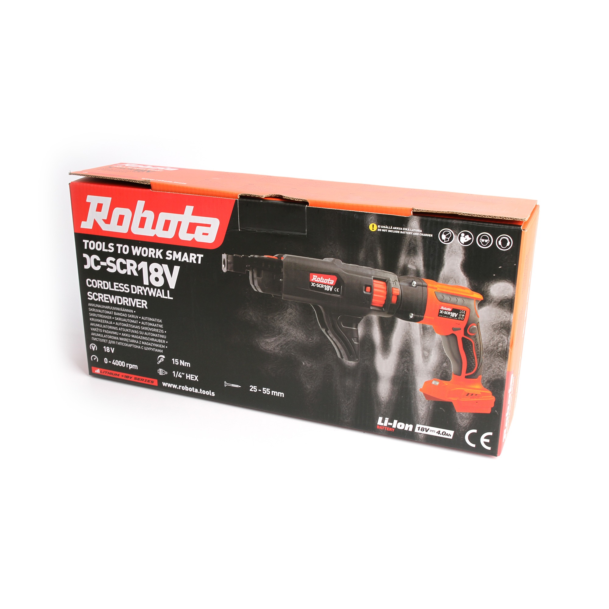 Työkalu nopeaan ja tehokkaaseen ruuvaukseenRobota DC-SCR18V akkukäyttöinen nauharuuvinväännin nopeaan sarjaruuvaukseen. Koneessa 1/4″ HEX eli “bitsi” istukka helppoa terän vaihtoa varten. Ruuvin syvyyden säätö onnistuu helposti. Tarvittaessa koneesta lähtee syöttölaite irti, jolloin voit ruuvata koneella myös pelkkiä irtoruuveja nauhasyötön sijaan. Koneen tehokkaan väännön ja nopean kierrosnopeuden ansiosta ruuvaaminen käy nopeasti ja vaivatta. Koneen syöttöön sopii 25-55mm mittaiset ruuvit. Koneen mukana aloituspakkaus nauharuuveja sekä ohjekirja.Mihin nauharuuvari soveltuu?Tämä laite on erinomainen esimerkiksi kipsilevyjen ja erilaisten puumateriaalien ruuvaamiseen, jossa tarvitsee kiinnittää suuri määrä ruuveja. Yleisesti rakennustyömailla käytetään paljon nauharuuvinväännintä.Tekniset tiedotJännite: 18VAkku: Min. 4.0 AhMax. vääntö: 15NmNopeus: 0-4000 kierr/minRuuvien koot: 25-55mmTämä Robotan akkunauharuuvinväännin toimii Robotan 18V tai Makita LXT 18V sarjan akuilla.Huom! Runkotoimitus, akku ja laturi ostettava erikseen.