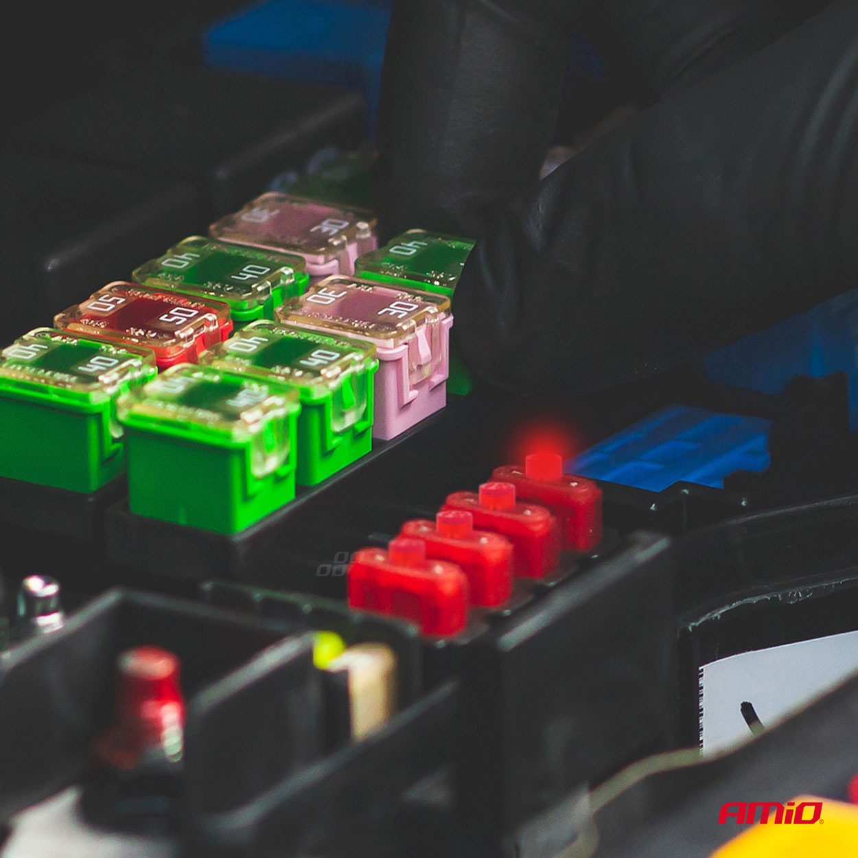 Nämä vakio-autojen sulakkeet on suunniteltu käyttäjän mukavuutta ja turvallisuutta silmällä pitäen. Sisäänrakennetun LED -merkkivalon ansiosta palanut sulake on heti näkyvissä, minkä avulla voit korjata ongelman nopeasti ajoneuvon sähköjärjestelmässä.