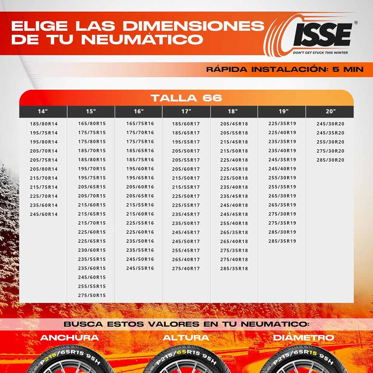 Isse Super Textile -mallin lumiketjut koossa 66 ovat innovatiivinen ja tehokas ratkaisu talvisiin ajoolosuhteisiin. Huippuluokan muotoilunsa ansiosta ne tarjoavat erinomaisen pidon liukkailla pinnoilla, kuten lumella ja jäällä, ja takaavat turvallisuuden sekä ajomukavuuden. Ne on valmistettu kestävistä, joustavista materiaaleista ja ovat ihanteelliset tilanteisiin, joissa perinteiset metalliketjut ovat hankalia asentaa tai käyttää.