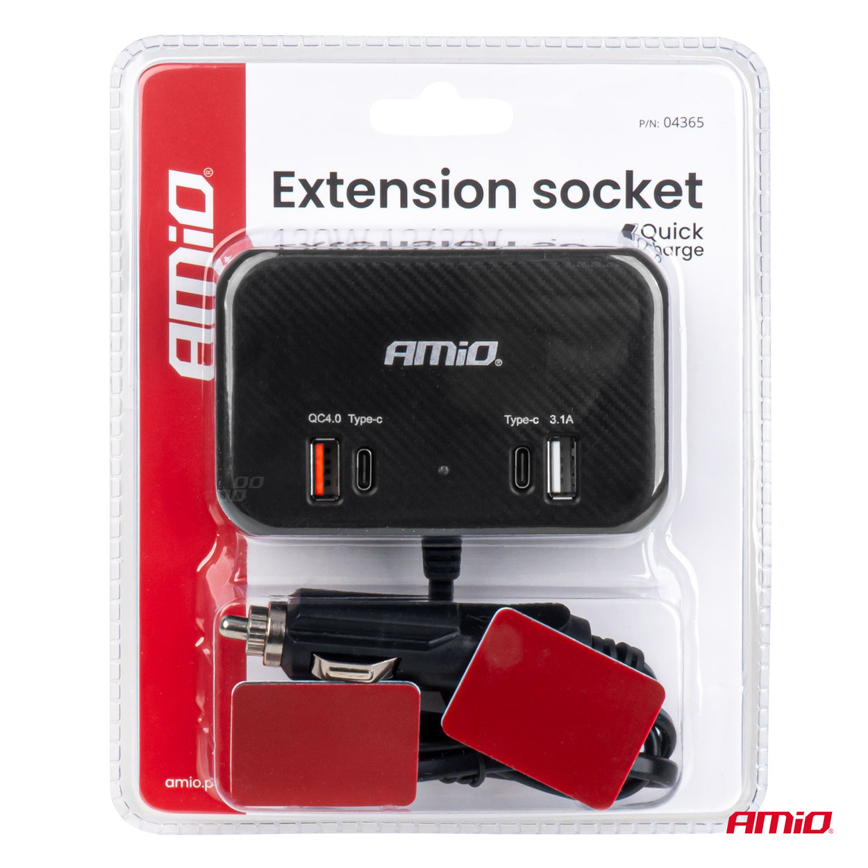 Tupakansytyttimen haaroitin 2x USB A 1x USB C 120W 12/24V