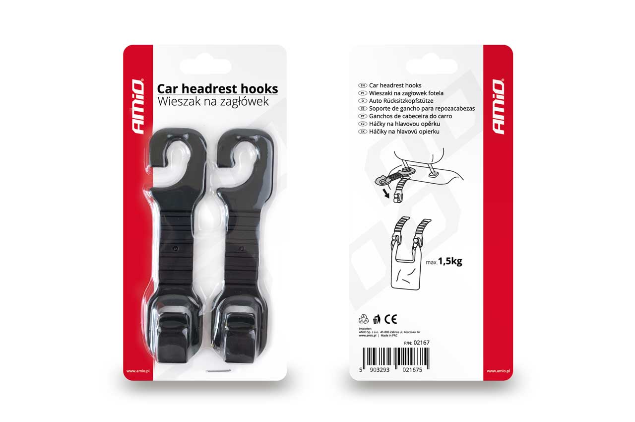 Yleiskäyttöiset auton ripustimet istuinten niskatuelle, joiden avulla voit ripustaa ostoskassit, sateenvarjon, takin tai käsilaukku. Riippuen tarpeistasi voit kiinnittää ripustimet niskatuen takaosaan tai etuistuimelle. Ripustimet ovat erittäin käytännöllinen ratkaisu autossasi järjestyksen ylläpitämisen helpottamiseksi..