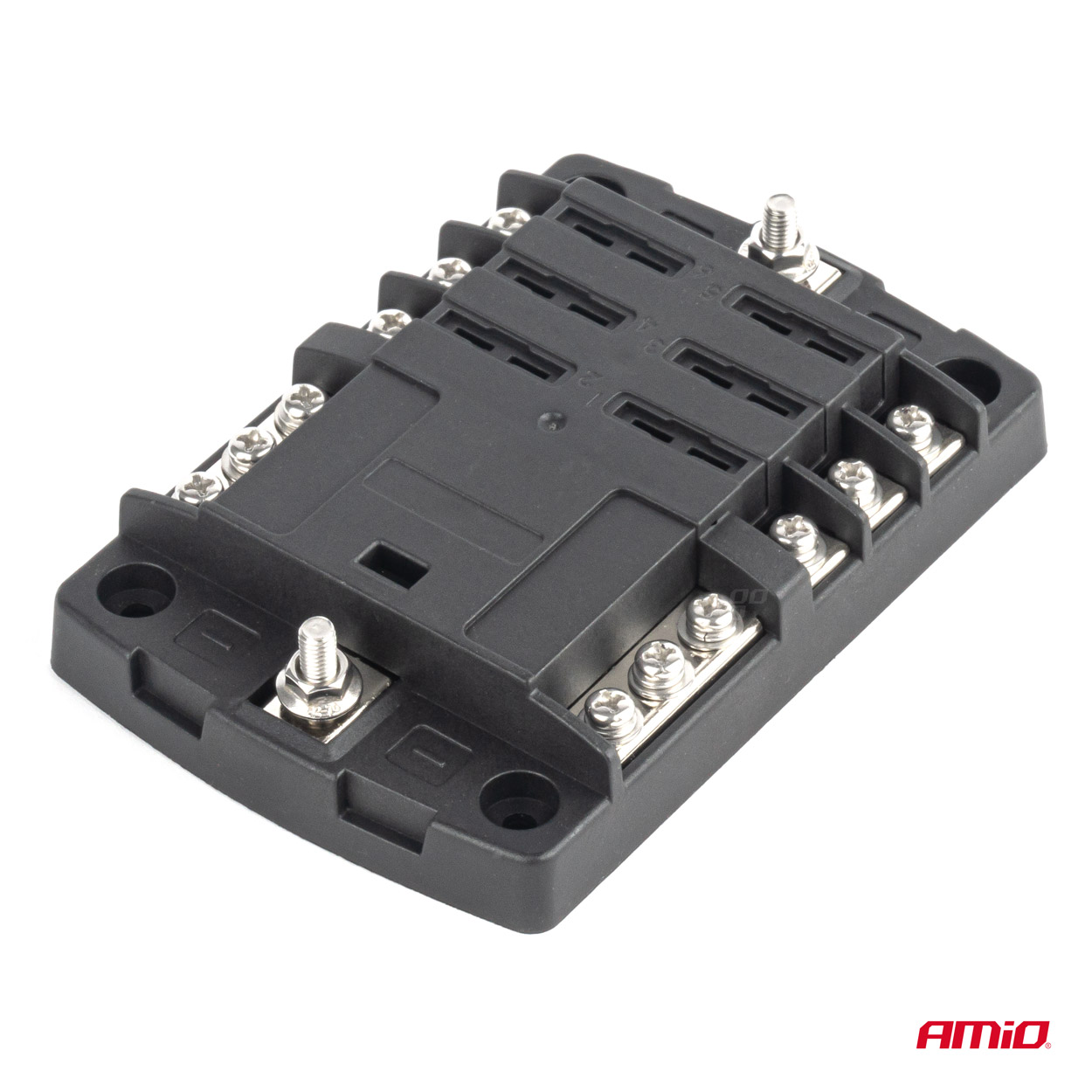 Esittelemme korkealaatuisen sulakerasian, jossa on negatiivinen kisko ja ruuviliittimet, varustettu 6 sulakepaikalla. Tämä tuote on ihanteellinen ajoneuvojen, veneiden ja erilaisten sähkölaitteiden sähköpiirien hallintaan varmistaen turvallisuuden ja käyttömukavuuden.